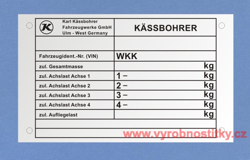 Výrobní štítek KÄSSBOHRER1 310 Kč/ ks