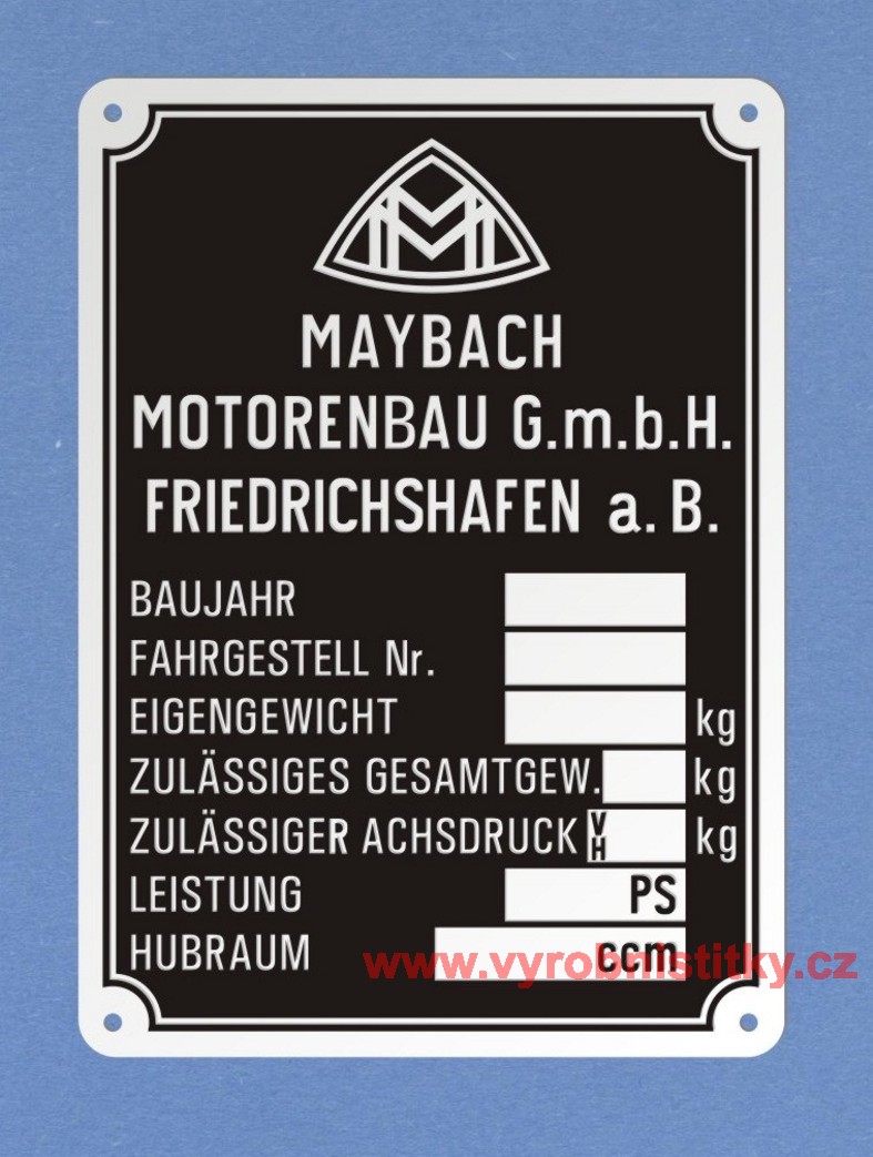 Výrobní štítek MAYBACH FAHRGESTELL leptaný4 210 Kč/ ks