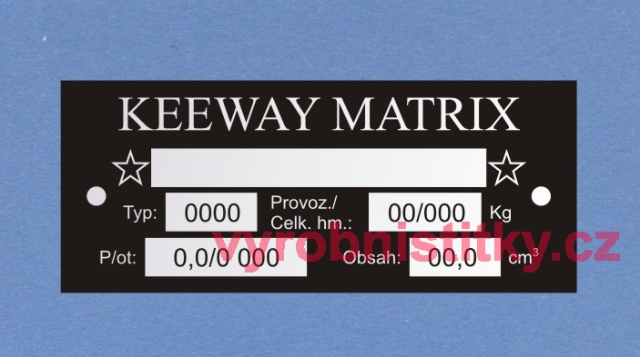Výrobní štítek KEEWAY - hliník500 Kč/ ks