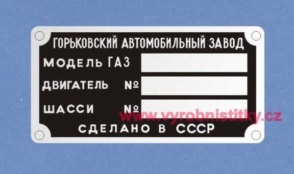 Výrobní štítek GAZ - model GAZ původní písmo880 Kč/ ks