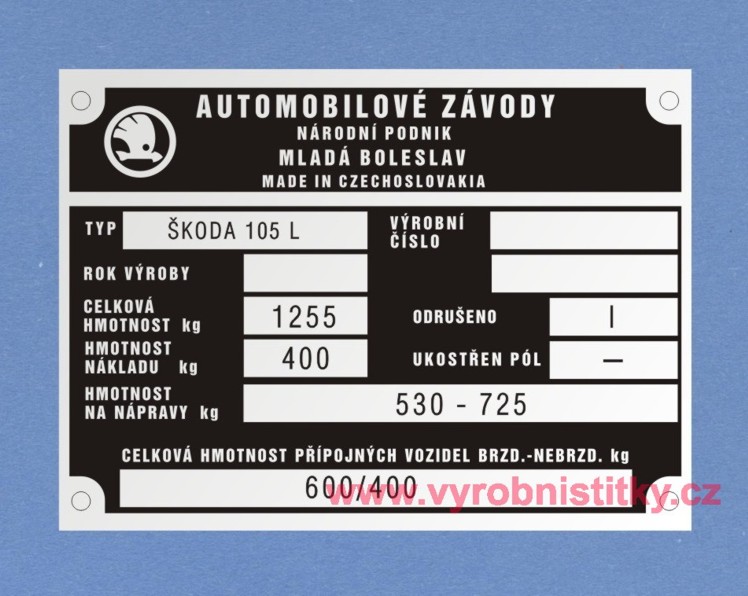 Výrobní štítek Škoda 105 L celk hmotn 1255