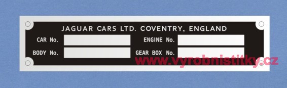 Výrobní štítek JAGUAR CARS LTD. COVENTRY