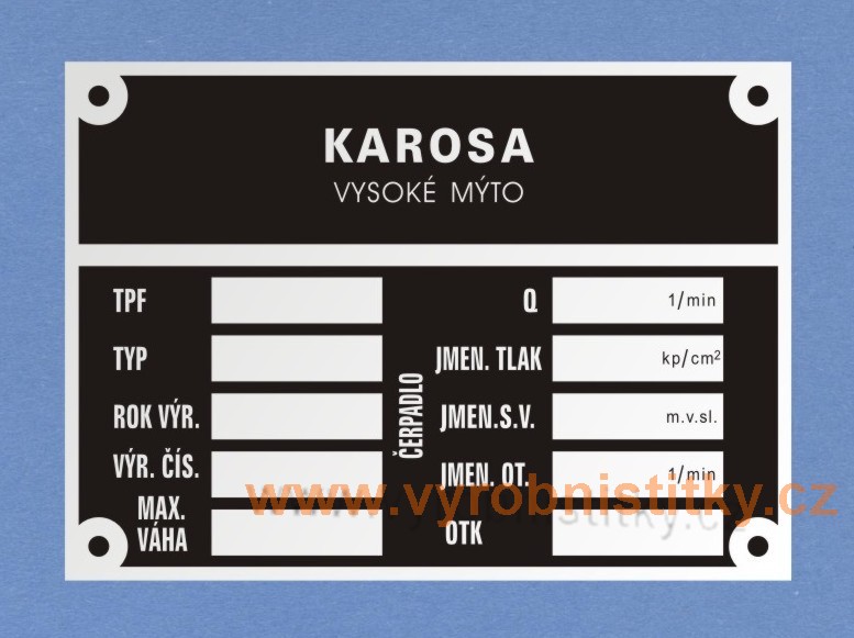 Výrobní štítek KAROSA - ČERPADLO880 Kč/ ks