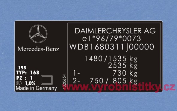 Výrobní štítek Mercedes-Benz plastový samolepící880 Kč/ ks