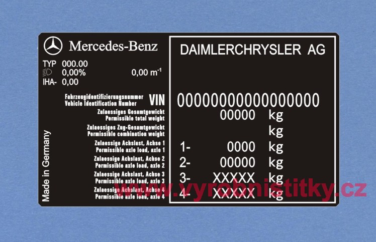 Výrobní štítek Mercedes-Benz ACTROS910 Kč/ ks