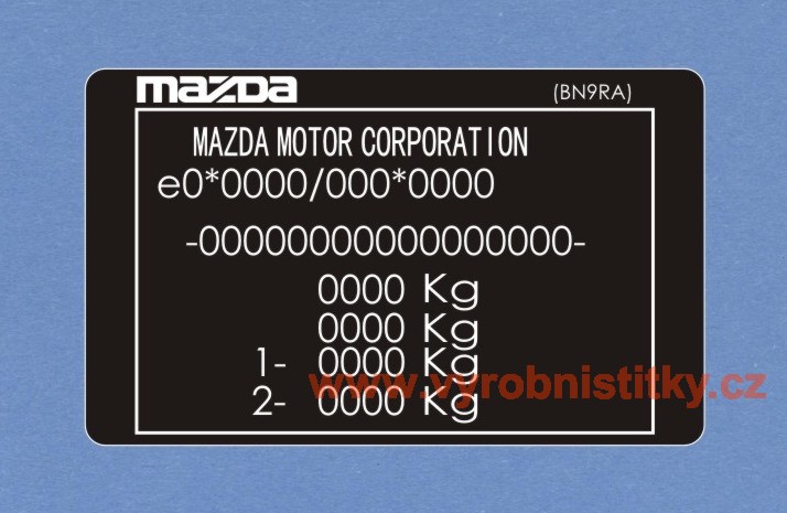 Výrobní štítek MAZDA polyesterová folie880 Kč/ ks