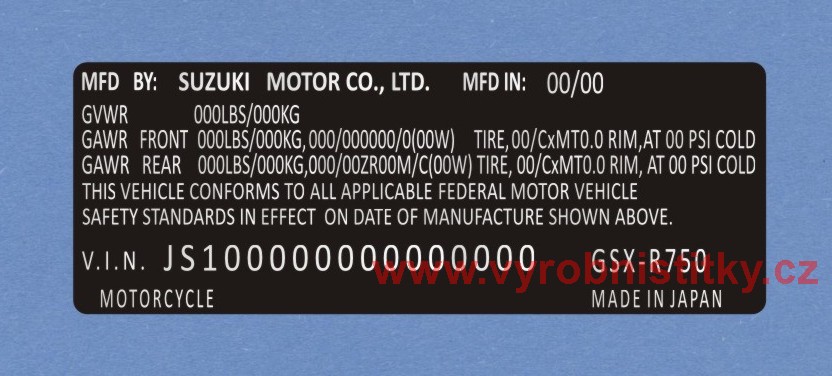 Výrobní štítek SUZUKI MOTOR R750 plast880 Kč/ ks