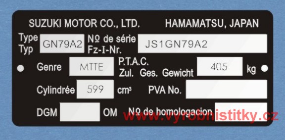 Výrobní štítek SUZUKI HAMAMATSU NN79A2500 Kč/ ks