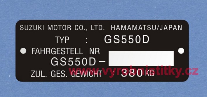 Výrobní štítek SUZUKI MOTOR černý, německý880 Kč/ ks
