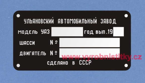 Výrobní štítek UAZ originální písmo880 Kč/ ks
