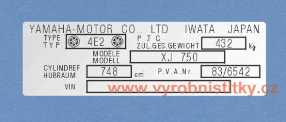 Výrobní štítek YAMAHA JAPAN verze 1_XJ750500 Kč/ ks