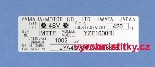 Výrobní štítek YAMAHA IWATA JAPAN Al folie910 Kč/ ks