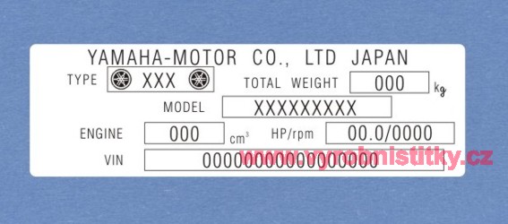 Výrobní štítek YAMAHA-MOTOR Co. LTD JAPAN - polyester bílý880 Kč/ ks