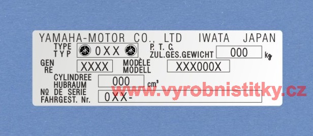 Výrobní štítek YAMAHA IWATA JAPAN Al 0,4 mm880 Kč/ ks