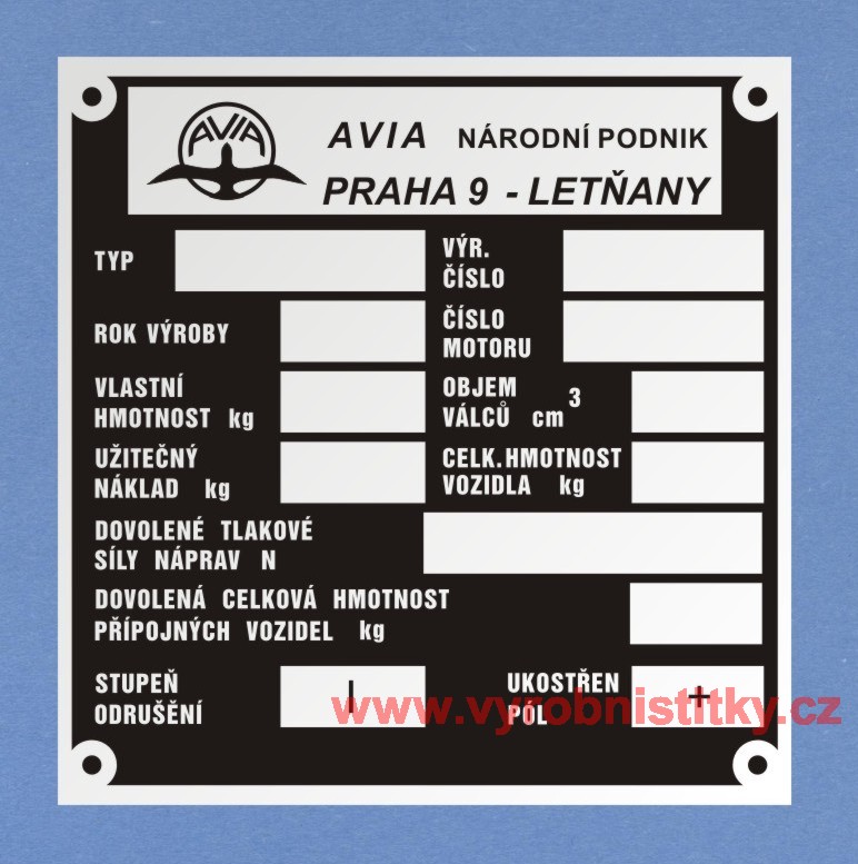 Výrobní štítek AVIA PRAGA V3S původní text880 Kč/ ks