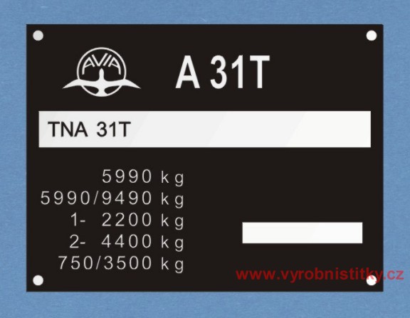 Výrobní štítek AVIA A31T přívěs 3500 kg880 Kč/ ks