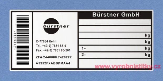 Výrobní štítek BÜRSTNER Gmbh1 310 Kč/ ks