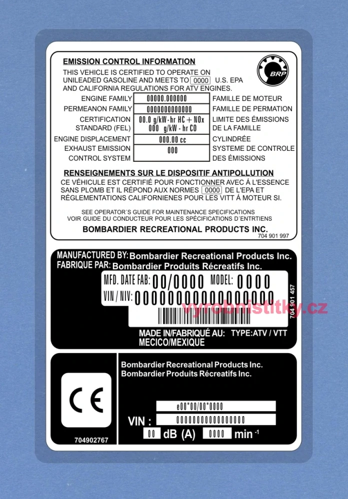 Výrobní štítek Bombardier BRP Can Am
