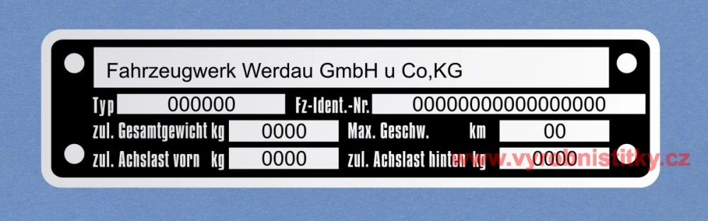 Výrobní štítek Fahrzeugwerk Werdau1 120 Kč/ ks