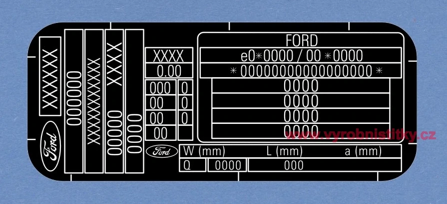 Výrobní štítek FORD TRANSIT - polyester880 Kč/ ks