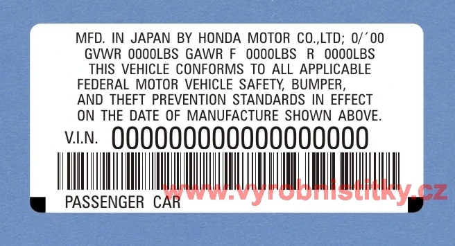 Výrobní štítek Honda ACURA NSX880 Kč/ ks