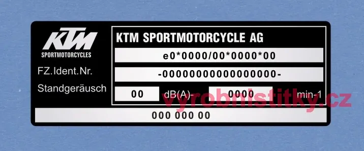 Výrobní štítek KTM SPORTMOTORCYCLE Al folie