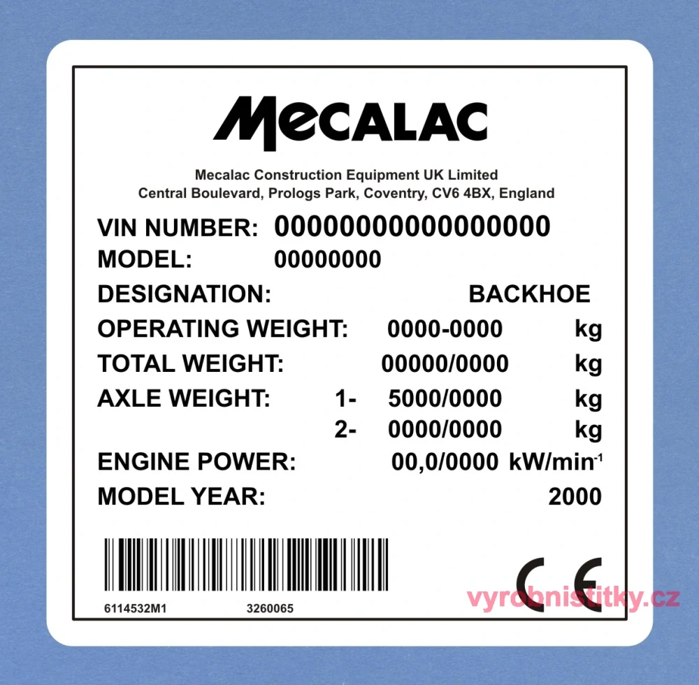 Výrobní štítek MECALAC1 180 Kč/ ks