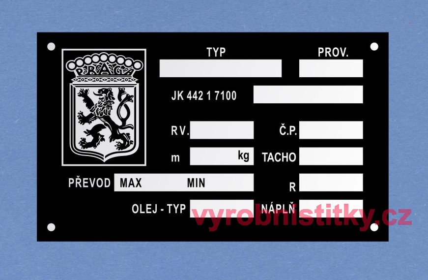 Výrobní štítek PRAGA 101 x 60880 Kč/ ks
