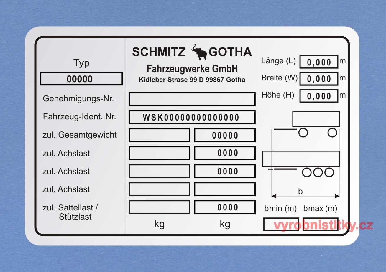 Výrobní štítek SCHMITZ GOTHA - rozměry