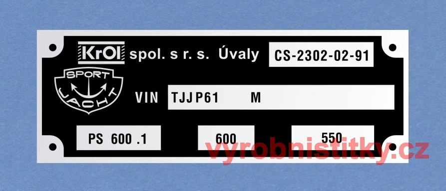 Výrobní štítek SPORTJACHT TROL Úvaly500 Kč/ ks