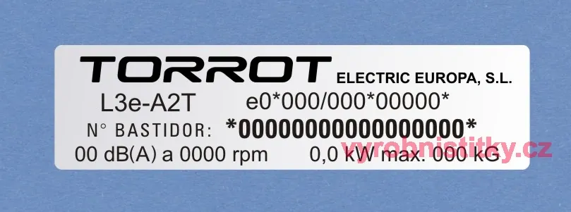 Výrobní štítek TORROT ELECTRIC700 Kč/ ks